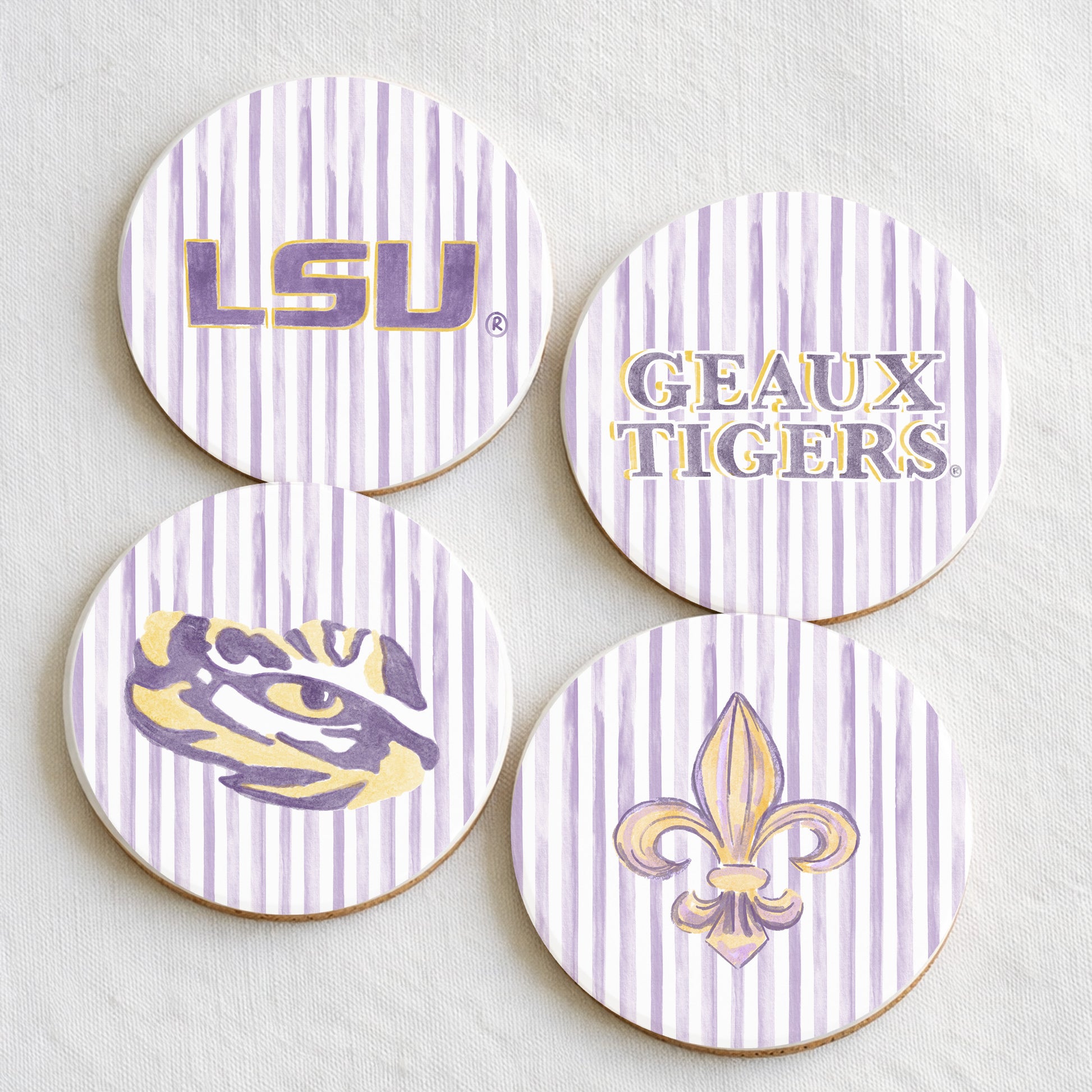Ceramic LSU Striped Coasters
