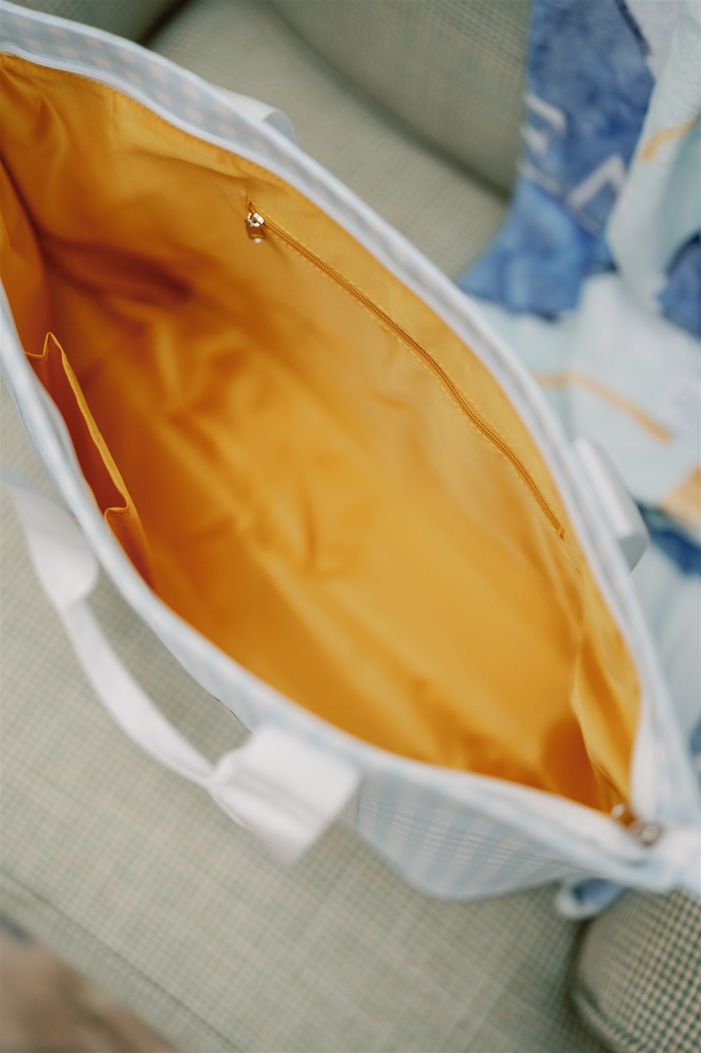 Our Alpha Xi Delta tote bag is a fresh and fun essential for any sister on the go! Designed with a light blue gingham pattern and crisp embroidered Greek letters, it’s both stylish and spacious. With three interior pockets, it’s perfect for keeping everything from your planner to your lip gloss organized and easy to find.