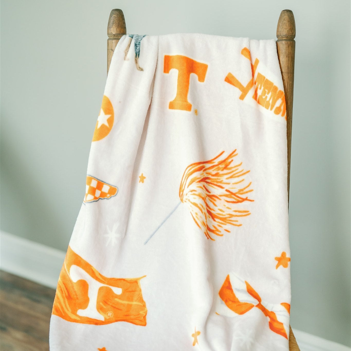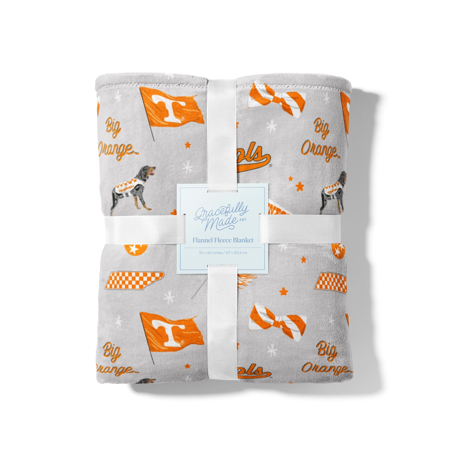 Show off your Volunteer pride with our ultra-soft Tennessee flannel fleece blanket! Featuring hand-illustrated elements like Smokey, power T flags, checkerboard details, and “Big Orange” spirit, this cozy blanket is perfect for chilly game days or relaxing at home. Lightweight yet warm, it's a fan favorite for dorm rooms, tailgates, or gifting to any Tennessee enthusiast.